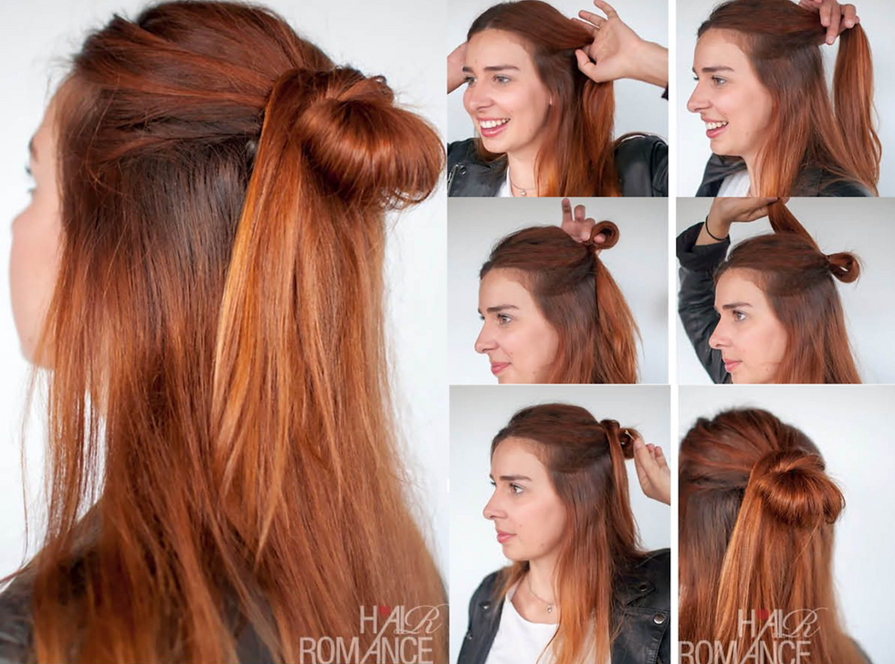 O half bun, ou meio-coque em português, é um penteado semi-preso super moderno e despojado, nada mais é que um nó no alto da cabeça em um estilo bagunçadinho.